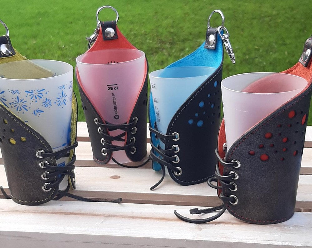 Porte-gobelet bi-color en cuir véritable, conçu pour accompagner vos sorties en festival et vos moments conviviaux. Pratique et élégant, il s'adapte aussi parfaitement au transport de pintes lors de vos événements. Cet accessoire alliant fonctionnalité et style saura séduire les amateurs de bonne qualité artisanale. Idéal pour protéger vos verres tout en gardant les mains libres.